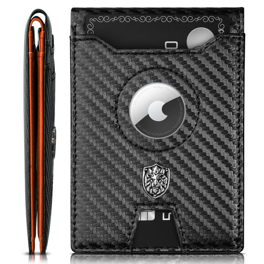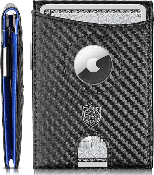 Slim Minimalist Mens Wallet with AirTag Card Holder 8 Slots RFID Blocking Front Pocket